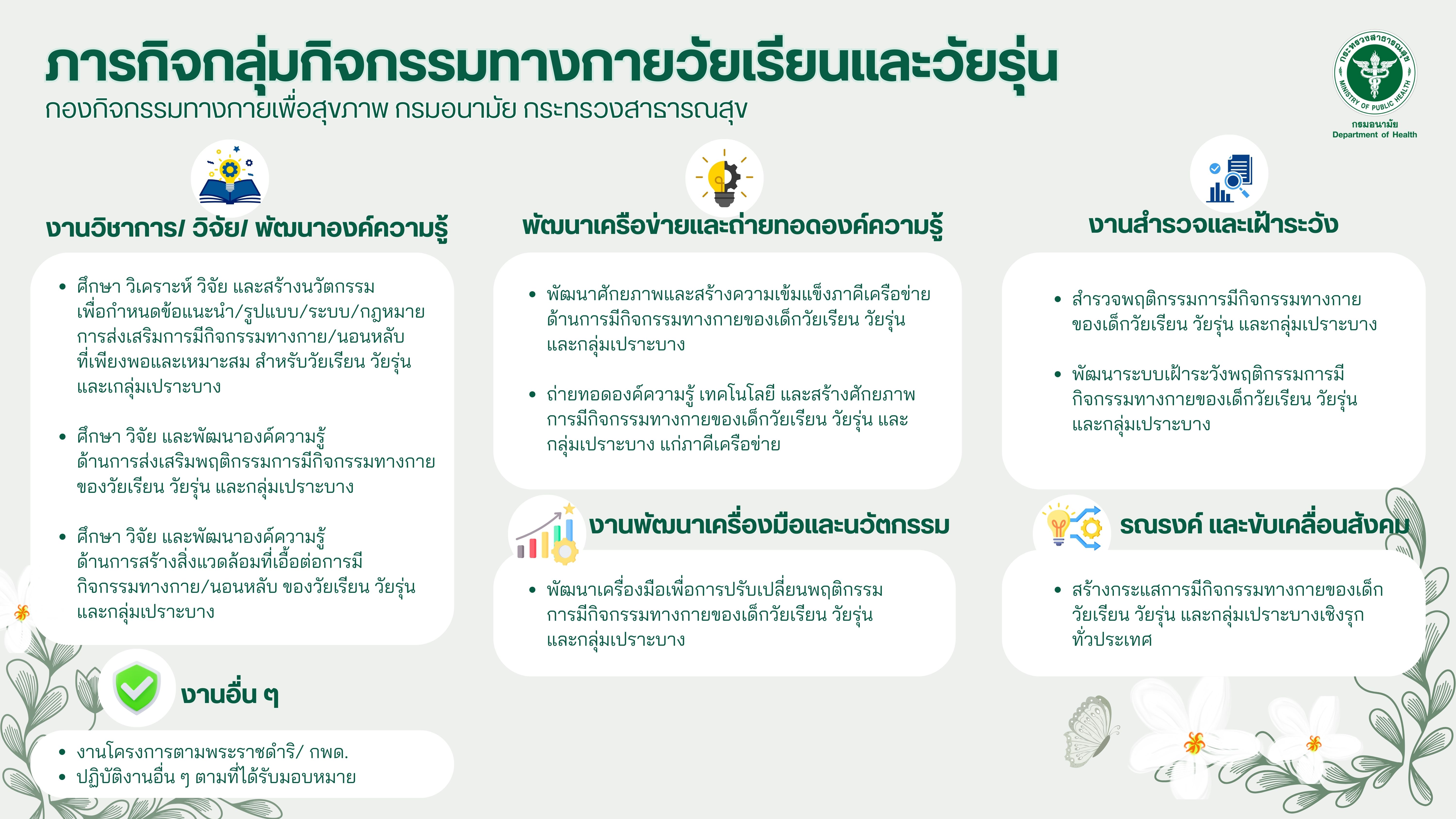Facebook: กลุ่มกิจกรรมทางกายวัยเรียนและวัยรุ่น กองกิจกรรมทางกายเพื่อสุขภาพ