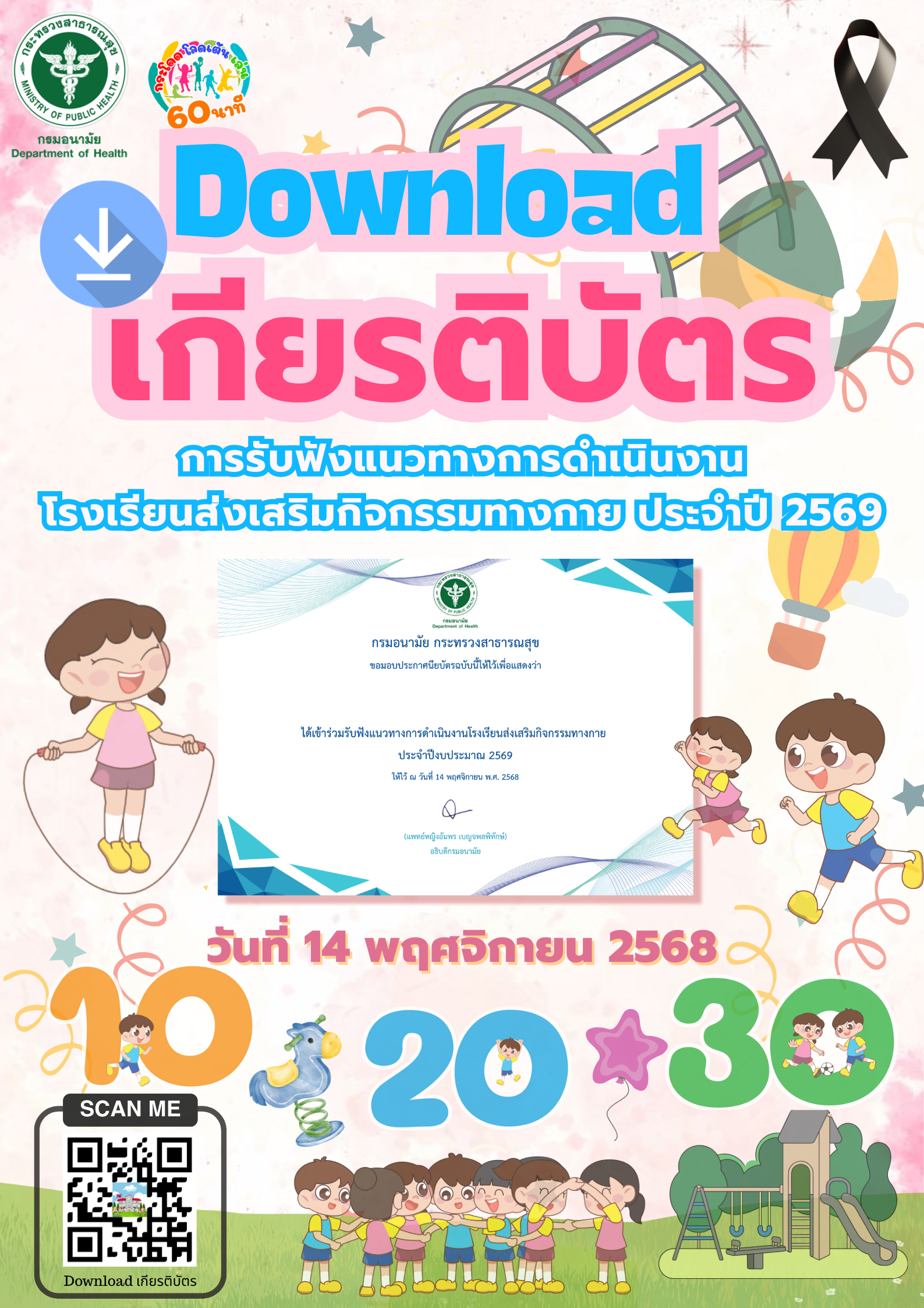 กียรติบัตรสำหรับผู้เข้าร่วมการรับฟังแนวทางการดำเนินงาน โรงเรียนส่งเสริมกิจกรรมทางกาย ประจำปี 2569
