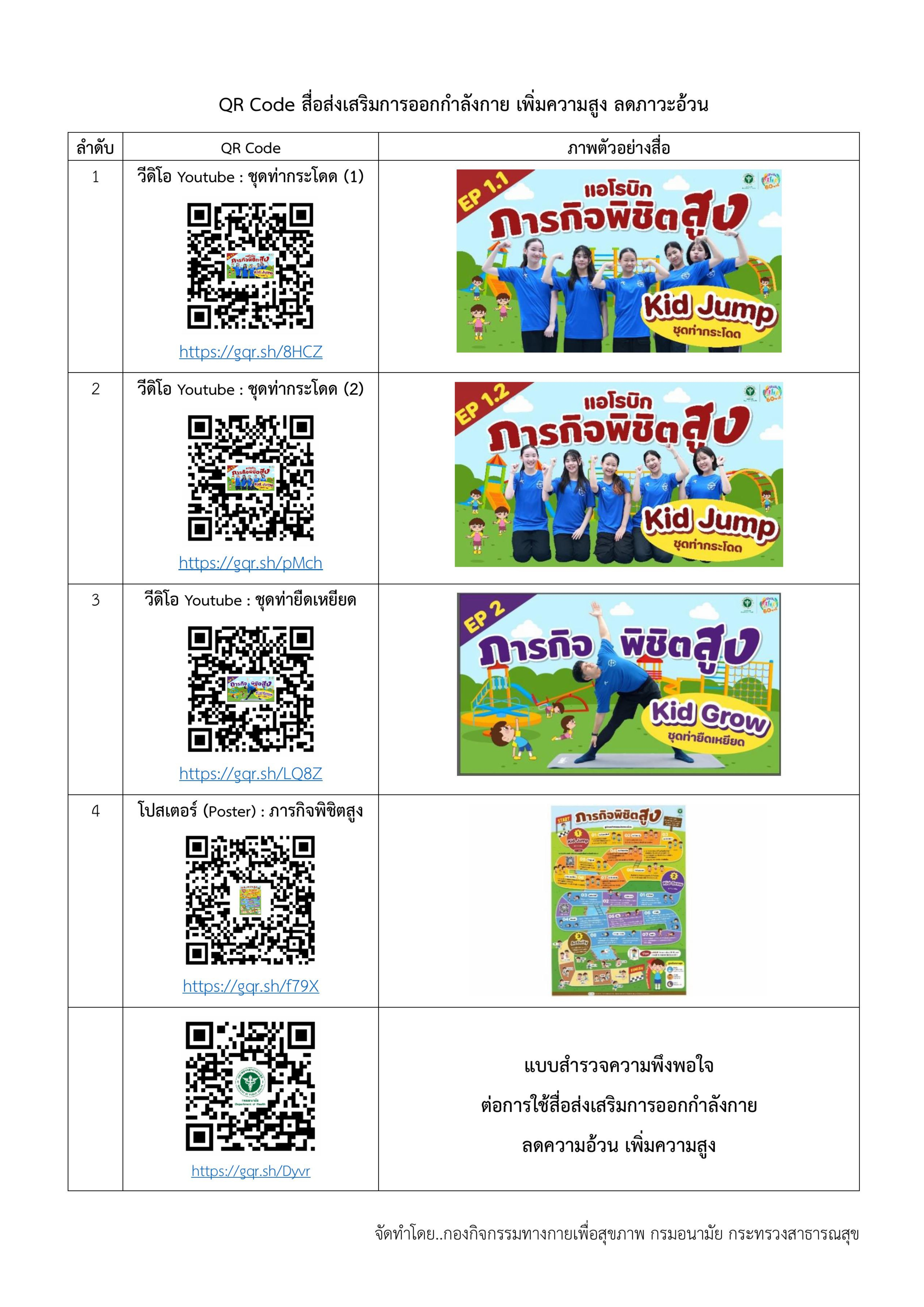 R Code สื่อส่งเสริมการออกกำลังกาย เพื่มความสูง ลดความอ้วน
